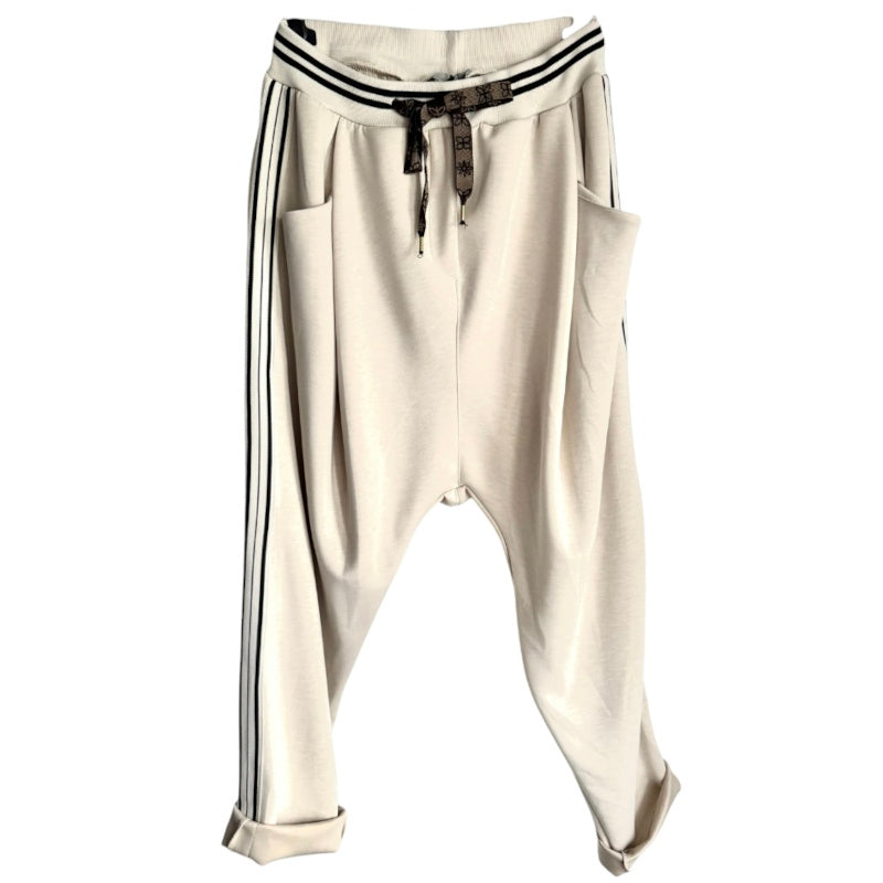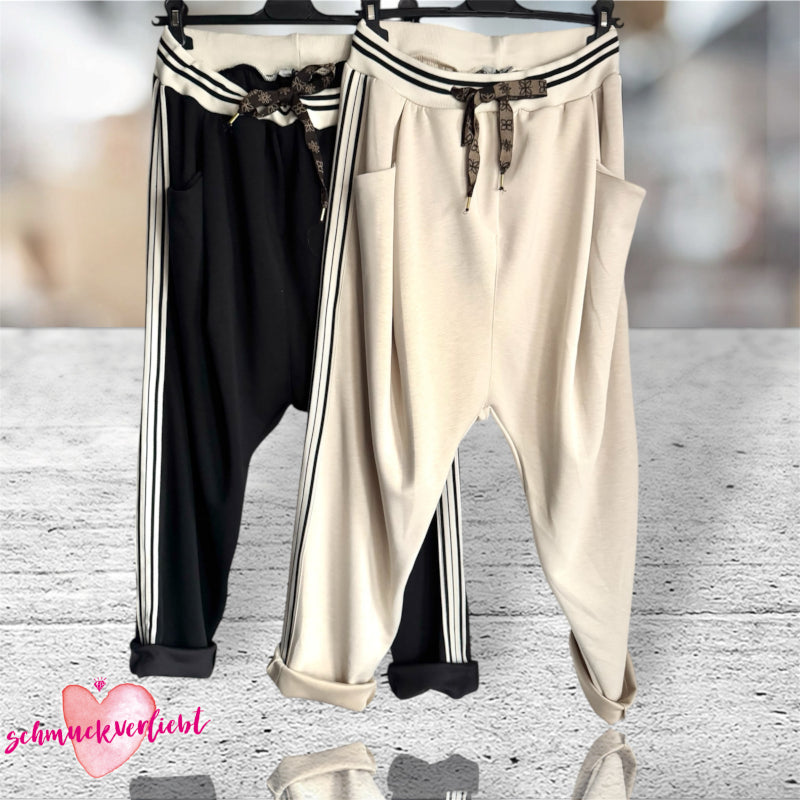 Die edle Baggy Hose "GALLON STRIPS" begeistert mit einem modernen und ausgefallenem Design. Zwei tiefe Bundfalten und Gallonstreifen in beige/schwarz seitlich an deinen Beinen verleihen der Hose eine stylische und edle Note. Zusätzliches Detail ist der stylische Kordelzug. Der hochwertige Materialmix sorgt für einen angenehmen Tragekomfort, super bequem und tolle Passform! Zwei neutrale Farben und das ausgefallene Design machen diese Baggy zu einem Allrounder und absoluten Fashion Highlight! ♥⚜️