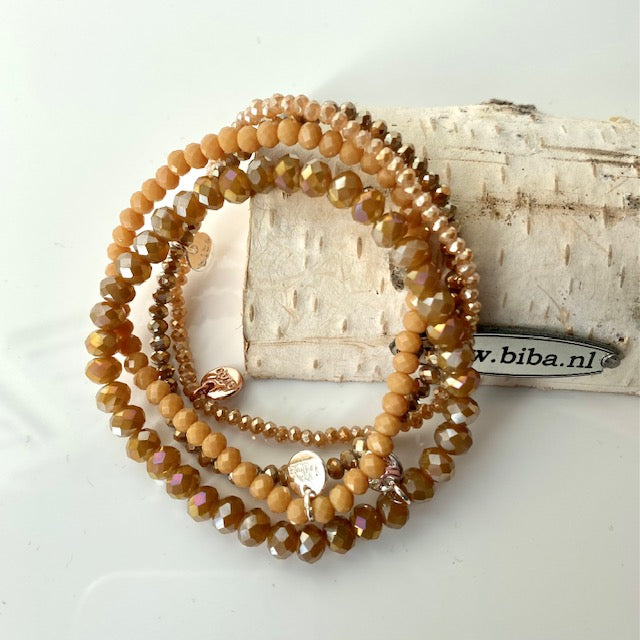 • 4-teiliges elastisches Armband-Set aus camelfarbigen facettierten Perlen, mit silberfarbigen Biba Charms