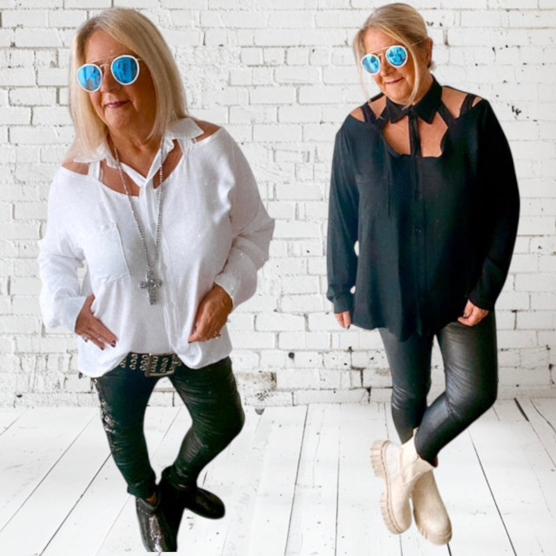 Elegante Bluse "GLORY" aus Viskose mit raffinierten Cut Outs am Dekolleté - ein ganz besonderer Eyecatcher und ein MUST HAVE! Eine Bluse die sowohl für den Alltag, als auch für besondere Anlässe geeignet ist. 🤍🌟🖤