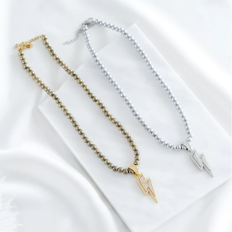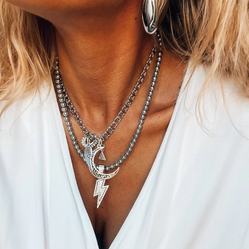 Handgefertigte Hämatit-Perlenkette mit einem markanten Donneranhänger. Auffälliger, aber leichter Schmuck - perfekt für Layering ⚡️