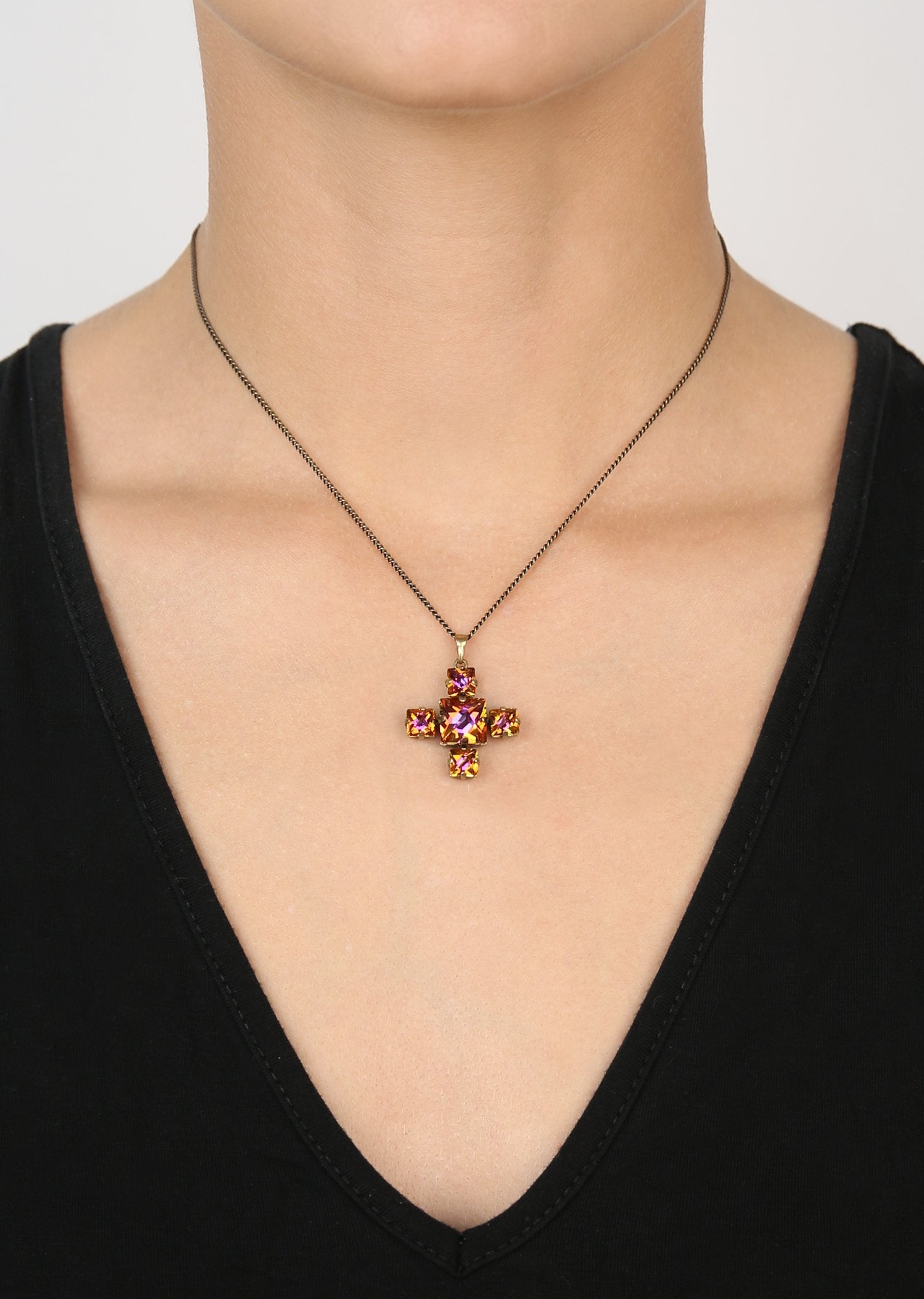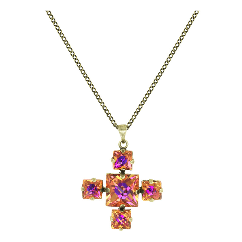 KONPLOTT® - PUNK CLASSICS, Kette mit Anhänger Kreuz, orange/lila