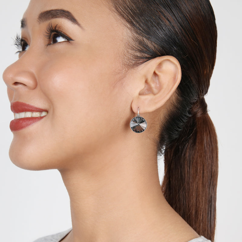 Du erwirbst ein paar Original KONPLOTT® Ohrringe mit Brisur aus der Kollektion Rivoli in der Farbstellung crystal night fall in grau