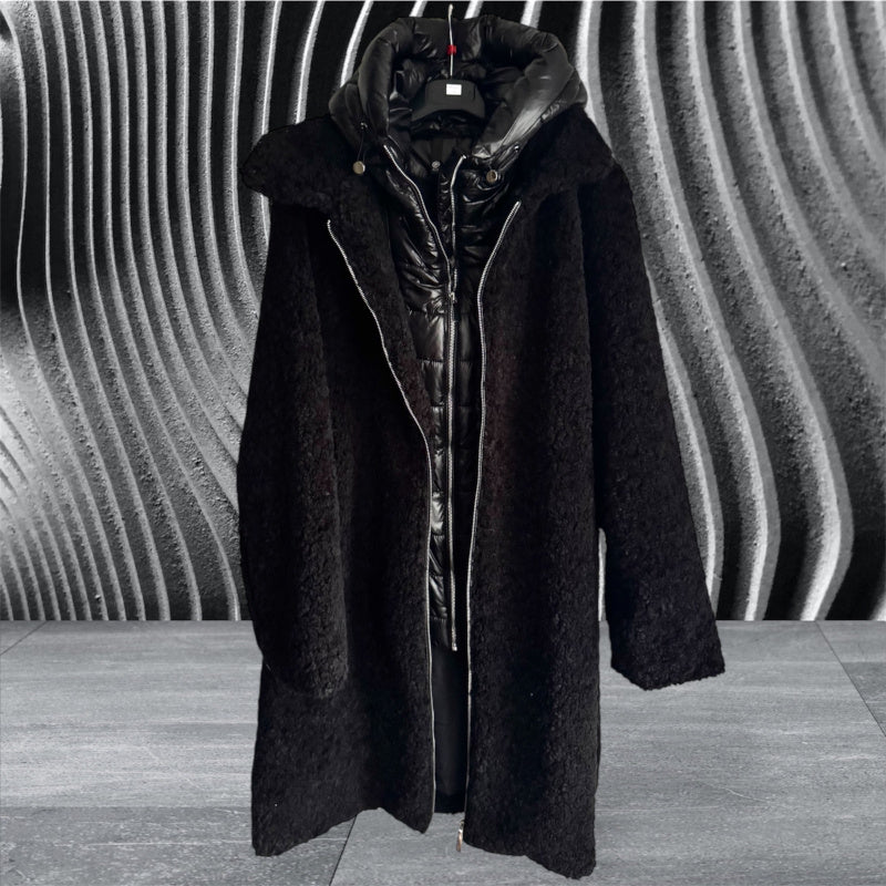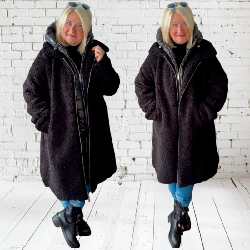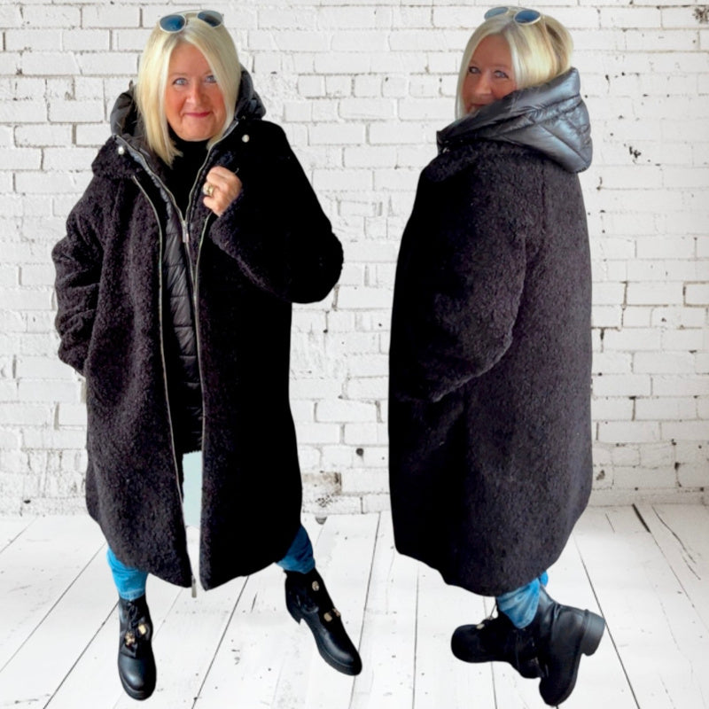 Unser kuscheliger Teddy Mantel "SHEEP" begeistert mit außerwöhnlichem Design. Dieser Mantel überzeugt durch praktische Funktionallität mit einem modischem, herausnehmbaren Steppeinsatz mit Kapuze. Der gefütterte Mantel wird mit einem Reißverschluss geschlossen. Das weiche Material bietet eine luxuriöse Haptik, ein angenehmes Tragegefühl und hält außerdem schön warm - anziehen und wohlfühlen. 🖤