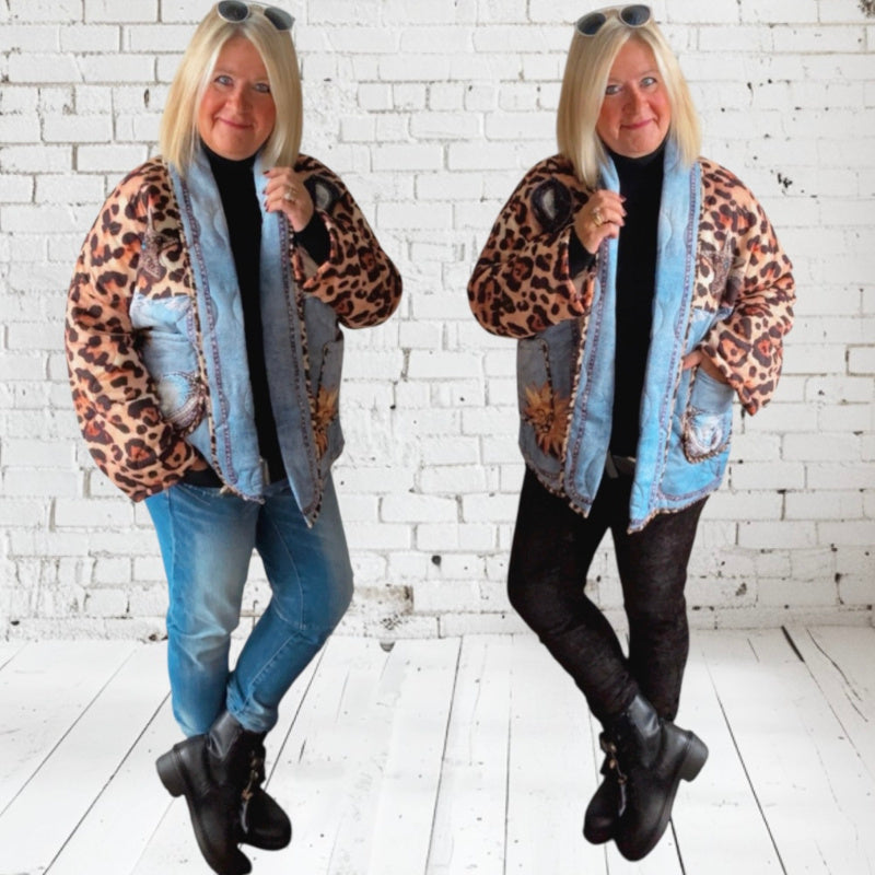 Unsere trendige Steppjacke "COSMOS" mit Schalkragen und akzentuierter Einfassung vereint klassisches Design mit modischen Akzenten. Die Jacke hat keine Schließen und wird offen getragen. Das leichte Material bietet angenehmen Tragekomfort und hält trotzdem schön warm. 🪐🌞⭐️